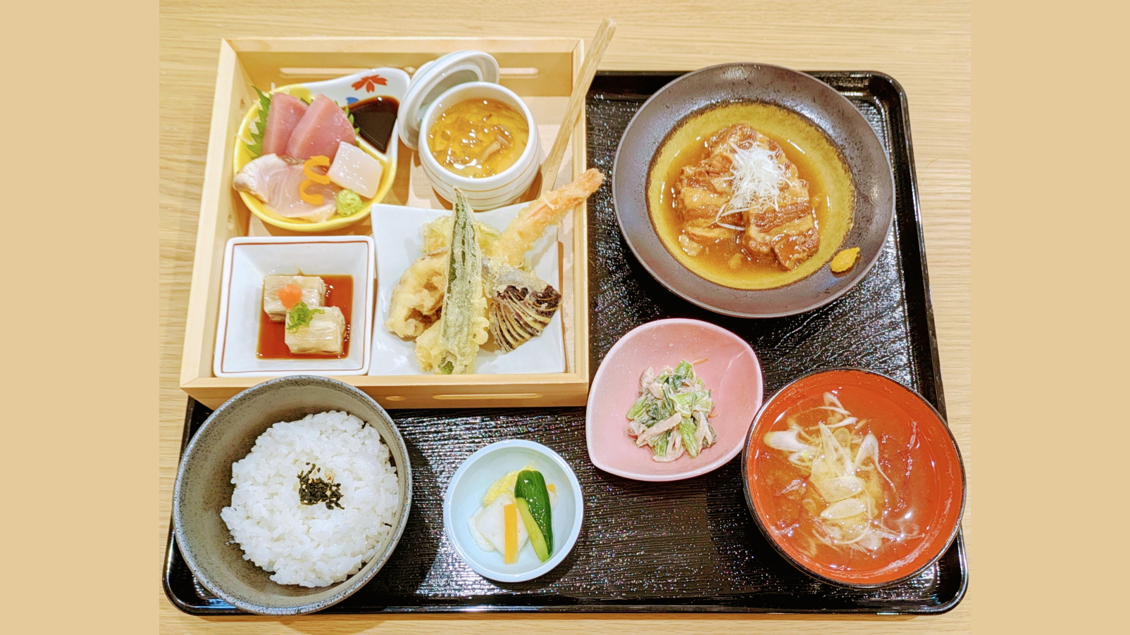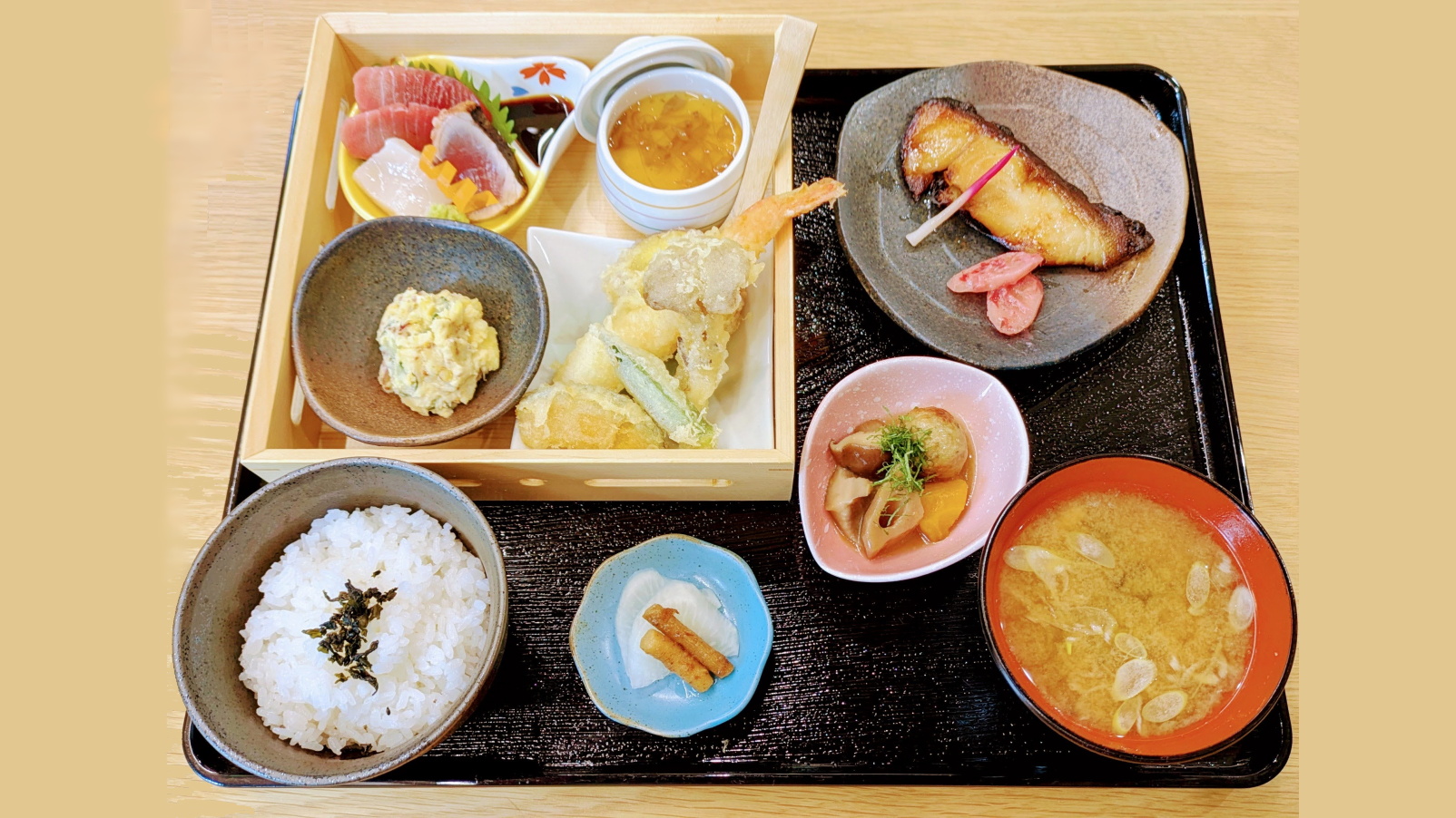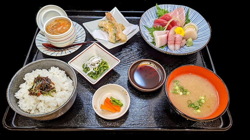 (刺身、天婦羅、茶碗蒸し、小鉢二品、