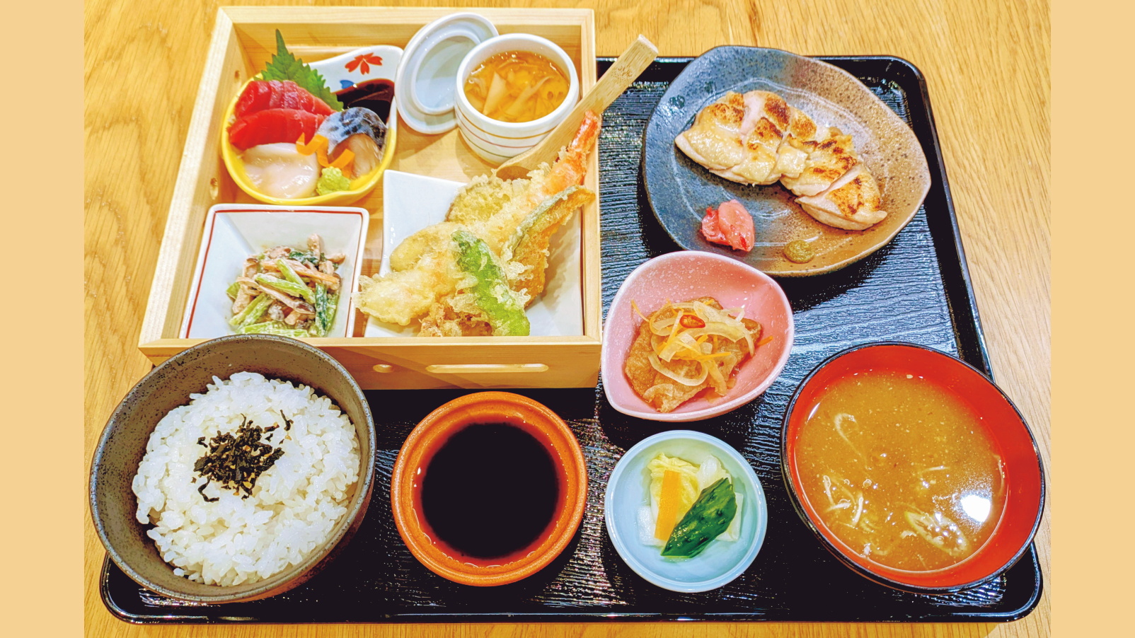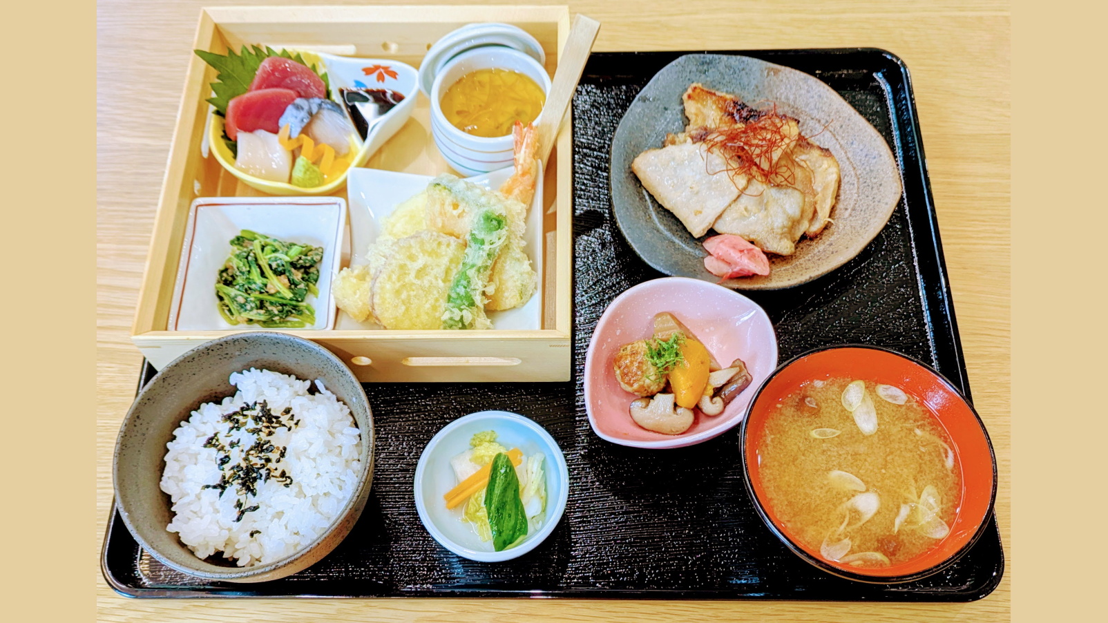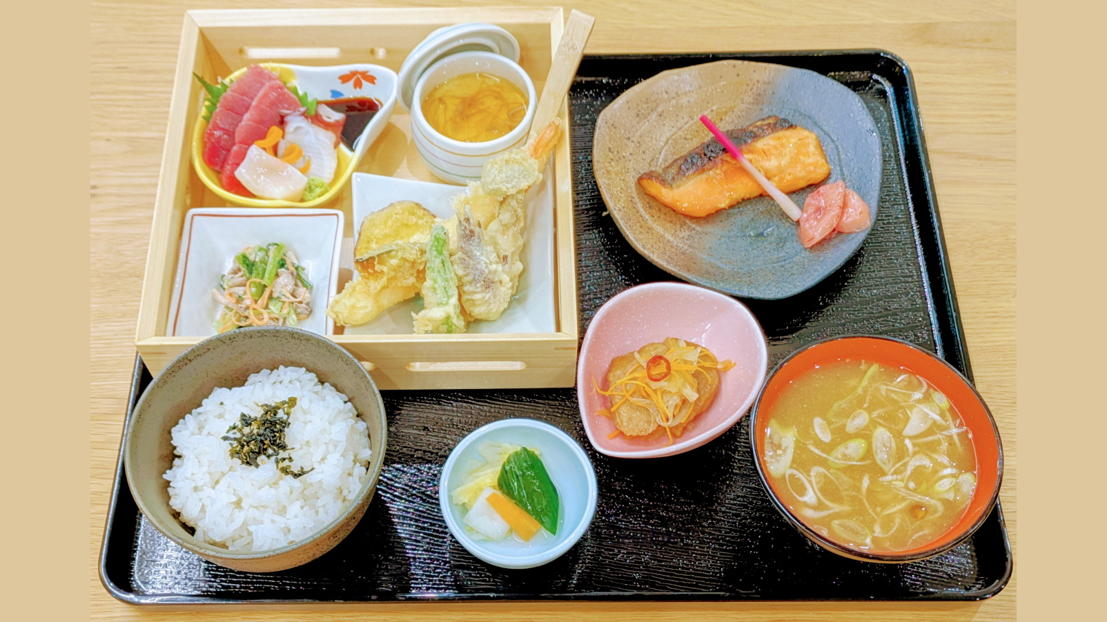 (刺身、天婦羅、茶碗蒸し、小鉢二品、